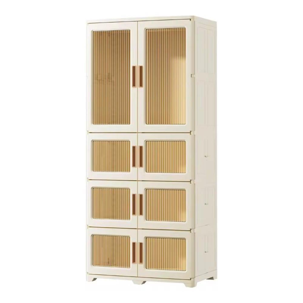 خزانة ملابس بلاستيكية 4 دور 8 باب قابله للطي باللون البيج