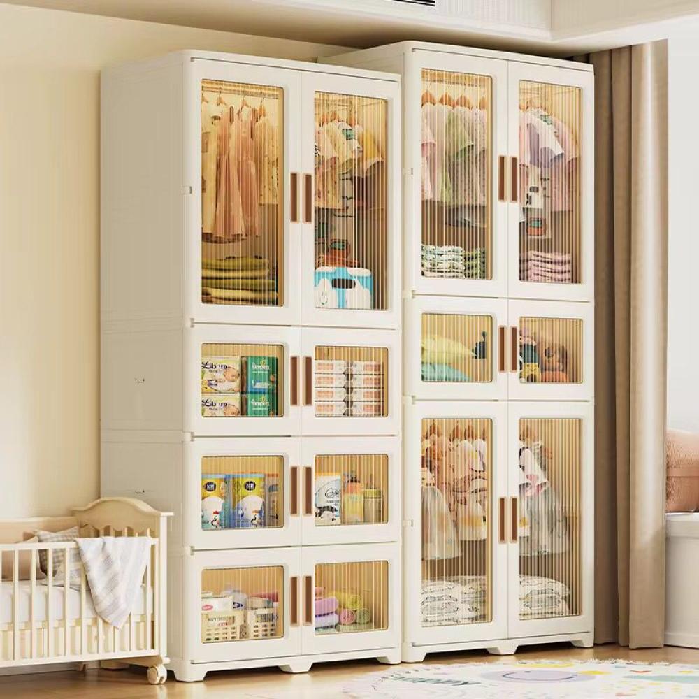 خزانة عملية وعصرية مكونة من 4 أدوار و8 أبواب، بتصميم بلاستيكي متين وقابل للطي، مثالية لتنظيم الملابس والأحذية والإكسسوارات في المساحات الصغيرة والكبيرة على حدٍ سواء