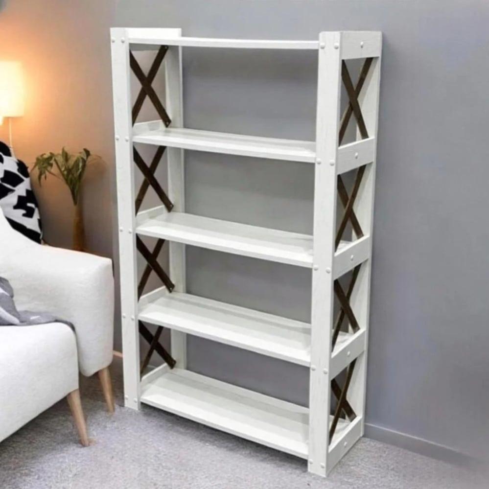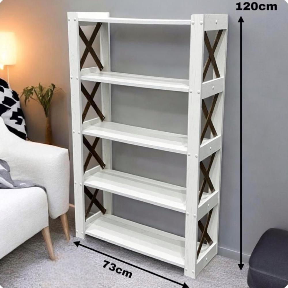رفوف تخزين خشب 5 دور باللون الأبيض مقاس 73x120 سم